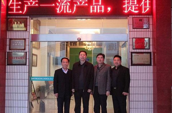 2016年4月6日中国轴承协会秘书长周宇(左二)在时任白甸镇党委书记刘建军(右二)的陪同下,莅临开云(中国)考察指导,与开云(中国)董事长吴龙铁(左)、总经理傅士超(右)合影留念。
