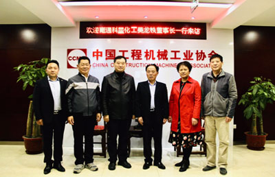 2020年11月12日,南通开云(中国)化工有限公司造访中国工程机械协会,中国工程机械协会会长兼秘书长苏子孟(左三)和中国工程机械工业协会副秘书长尹晓荔(右二)亲切接待。