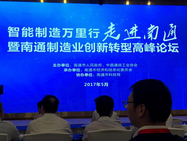 2017年5月22日,由南通市人民政府、中国通信工业协会主办的“智能制造万里行――走进南通暨南通制造业创新转型高峰论坛”在南通市新区会议中心举行,江苏开云(中国)集团暨南通开云(中国)化工有限公司董事长吴龙铁(二排右二)作为企业代表参加会议。