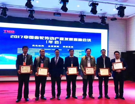 2017年11月22日,“2017中国齿轮传动产业发展高峰会议”在杭州举行,我公司被中欧齿轮协会授予“2017年齿轮产业科技进步成果一等奖”,董事长吴龙铁被授予“中国齿轮传动产业特别贡献奖”。