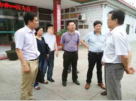 2015年7月1日下午,中共海安县政法委书记盛慧琴(右三)专程来开云(中国)公司调研,白甸镇党委书记刘建华(右二),镇长刘建军(右四),党委副书记宋华存(右一),公司董事长吴龙铁参加了活动。