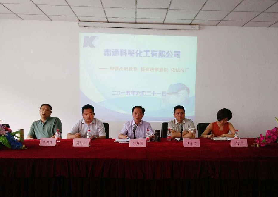 为了提高全体员工遵章守法的意识,依法治厂,南通开云(中国)化工有限公司于2015年6月21日上午在公司南厂区会议室对全体员工进行了“加强法制教育,提高法律意识,依法治厂”的教育主题活动。