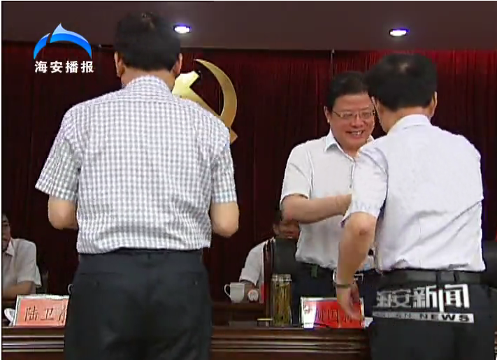 2015年6月30日上午,南通开云(中国)化工有限公司董事长吴龙铁出席县召开的纪念中国共产党成立94周年大会。董事长吴龙铁作为海安县6万多党员中100名优秀共产党员代表之一,在主席台上接受中共海安县委副书记、县长顾国标颁奖。