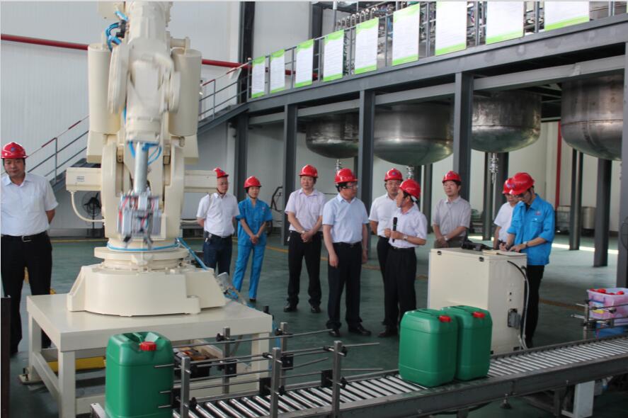 调研期间,顾县长一行领导首先来到自动化生产车间流水线及机器人智能码垛现场。14条生产流水线用工11人,可年产各类产品10万余吨,营业收入15亿元以上。整个生产现场安全保障措施可控,环境保护切实可行,自动化智能化生产效能极高。