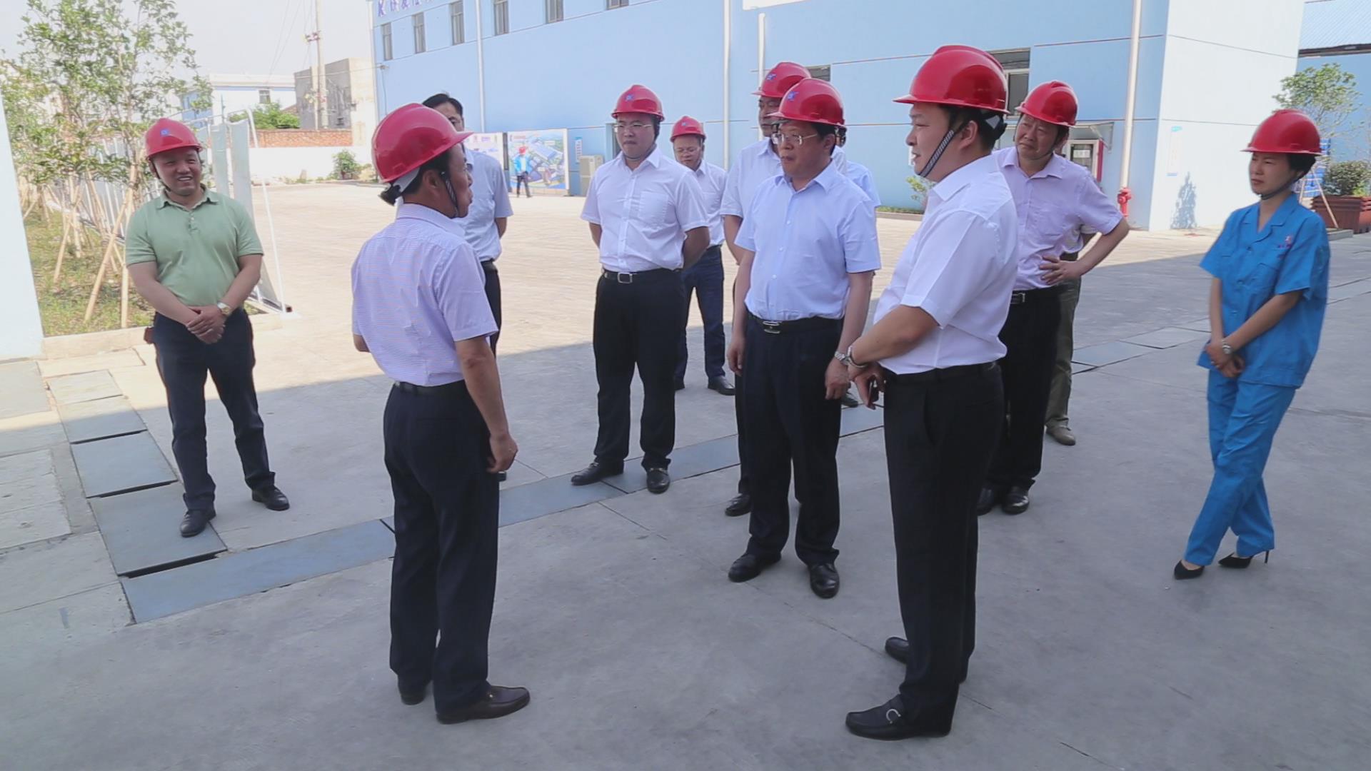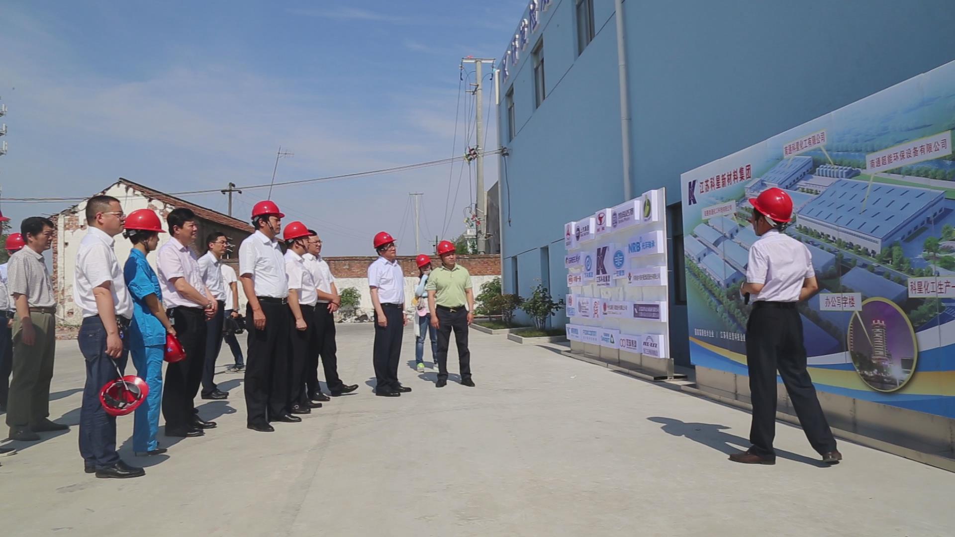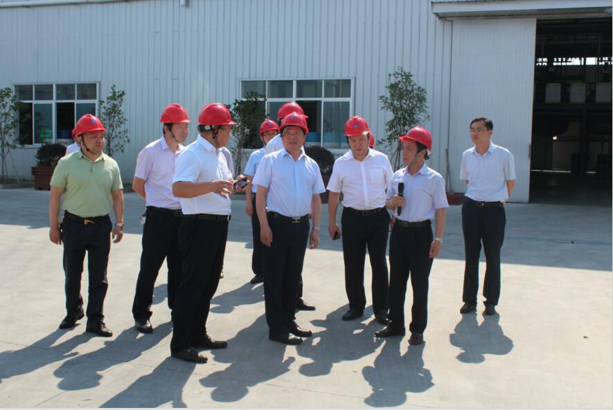 2017年6月16日,中共海安县县委副书记、县长顾国标(右四)一行领导专程来开云(中国)化工有限公司深入调研。江苏开云(中国)集团董事长吴龙铁(右二)陪同县领导在现场参观并作详细介绍。