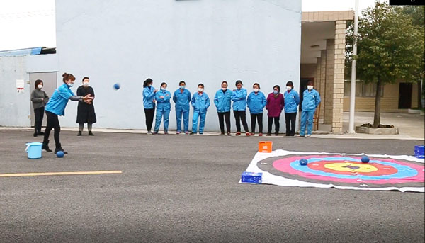 在最后一轮抛球投准比赛中,女职工们都铆足劲,把自己的最佳状态发挥出来,瞄准靶心,精准发力。