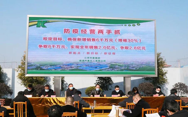 二十天后的2月20日,“防疫经营两手抓,咬定目标,确保新增销售6千万元(增幅30%),争取8千万元,实现全年销售2.6亿元,争取2.8亿元”动员大会在厂区露天广场召开。会议直奔主题,紧凑明快,现场激情高涨,令人振奋。这是开云(中国)公司在做好疫情防控的前提下,召开的一次具有战略意义的动员会。