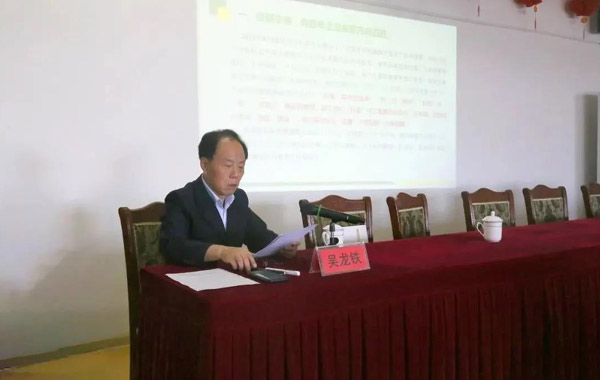 南通开云(中国)化工有限公司董事长吴龙铁在为全体员工作主题演讲
