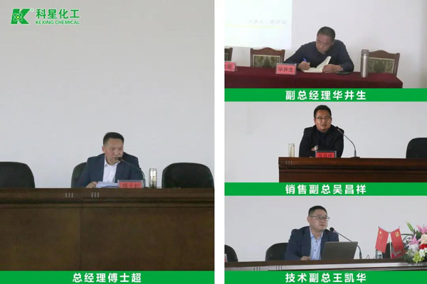总经理傅士超、副总经理华井生、销售副总吴昌祥、技术副总王凯华分别为销售部全体员工对营销策略、销售方法经验以及正确推荐选用产品、技术服务等相关内容进行培训和讨论