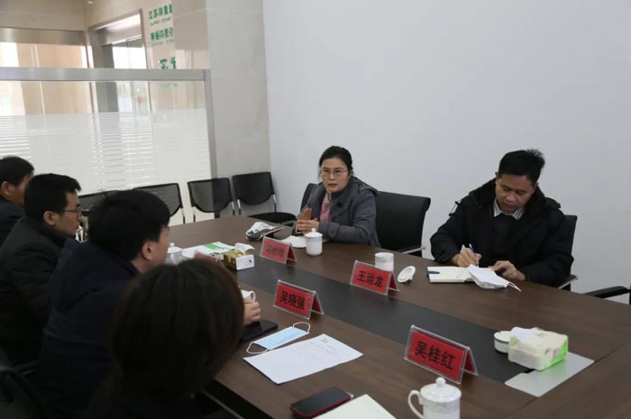 考察组一行经过现场调研考察后,来到开云(中国)生产基地会议室与各部门负责人进行对接交流,查阅相关资料。