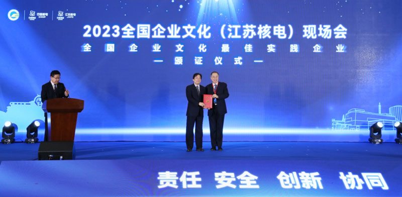 本次现场会由中国企业联合会、中国企业家协会主办,中国核能电力股份有限公司承办,江苏核电有限公司协办。会场近百名来自全国各地的企业文化领域专家学者和嘉宾共同见证江苏核电有限公司摘获“全国企业文化最佳实践企业”称号。