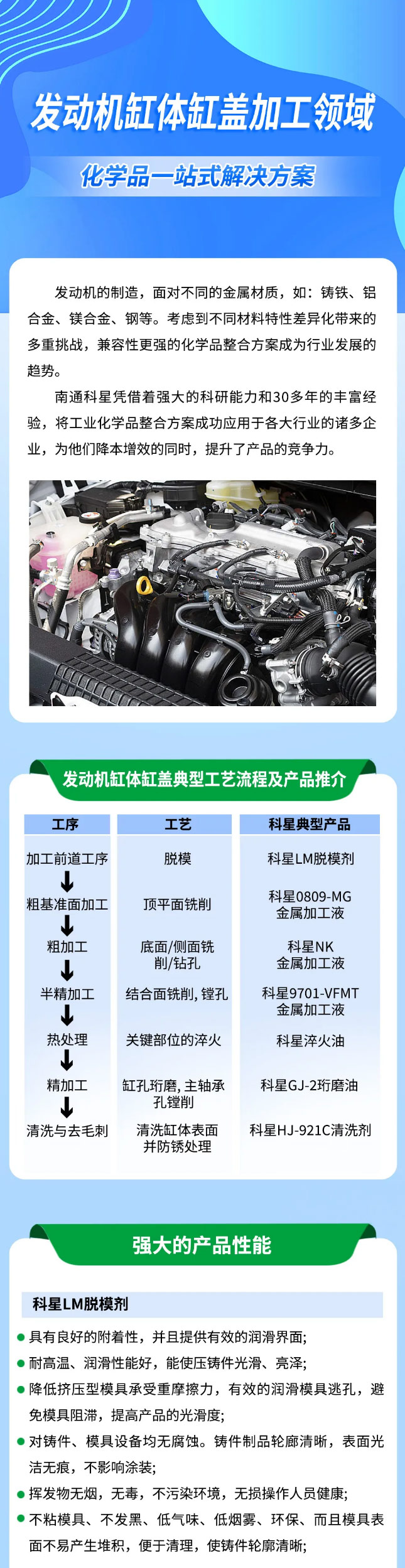 发动机缸体缸盖加工领域化学品一站式解决方案