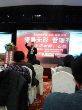 11月26日,吴总在海安锦隆大酒店参加了世华智业集团、北京华夏管理学院由石俭老师主讲的《领导无形、管理有道》的讲座,吴总受益匪浅。吴总讲,我们将扬长避短,博众之长,将有效的经验运用到平时的管理之中,使公司的管理再跃新台阶!
