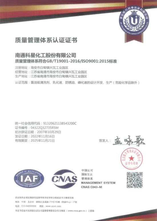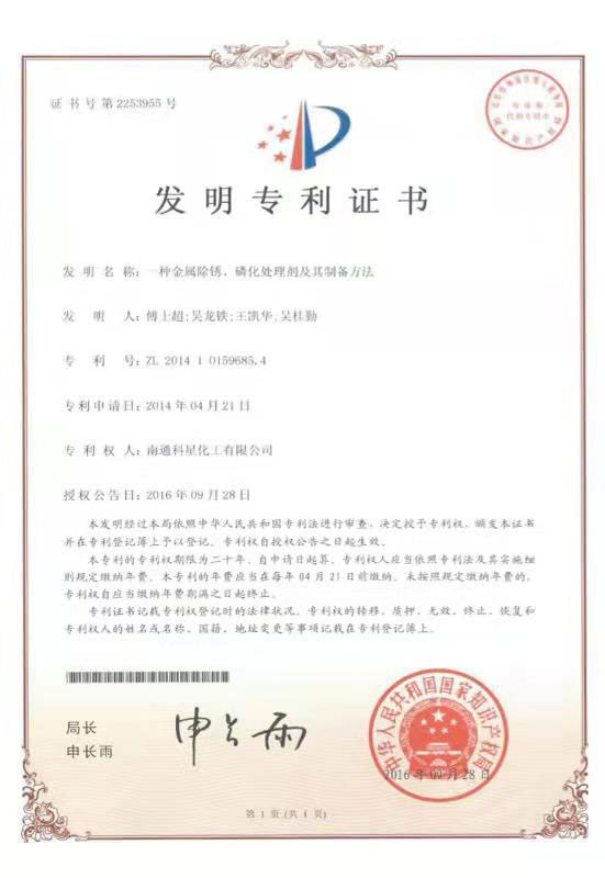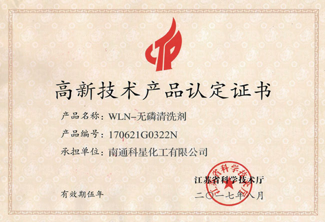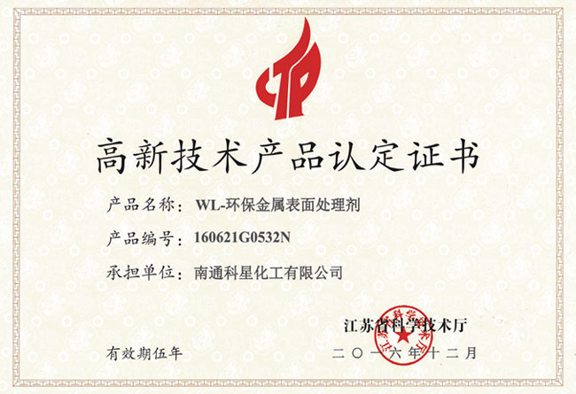 高新技术产品认定证书-WL-环保金属表面处理剂
