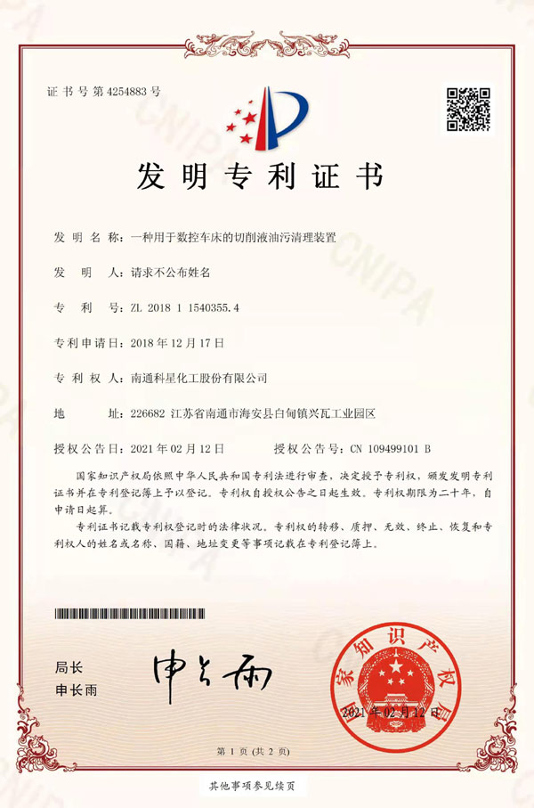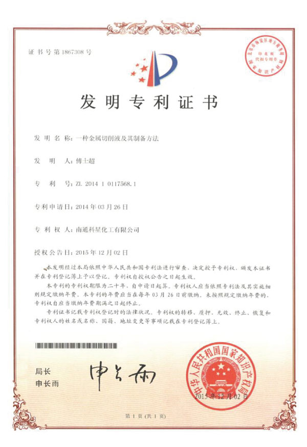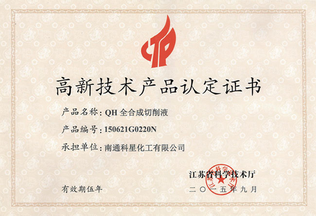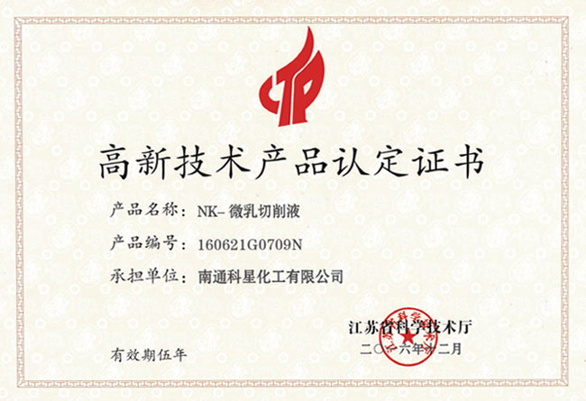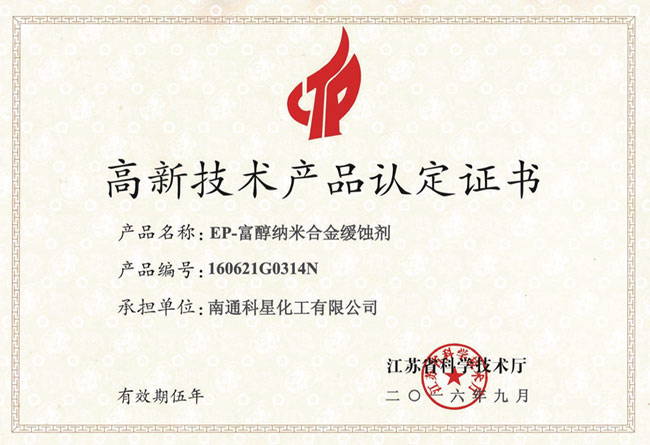 高新技术产品认定证书-EP-富醇纳米合金缓蚀剂